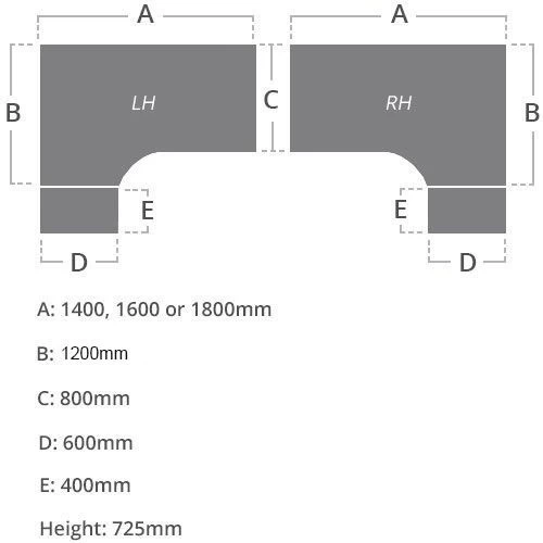 | Width  | 1400, 1600 or 1800  | 400  |