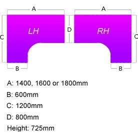 | Width  | 1400, 1600 or 1800 | 400  |