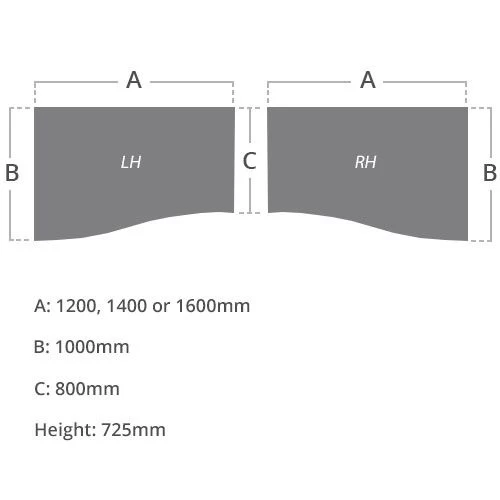 | Width  | 1200, 1400 or 1600 | 400  |