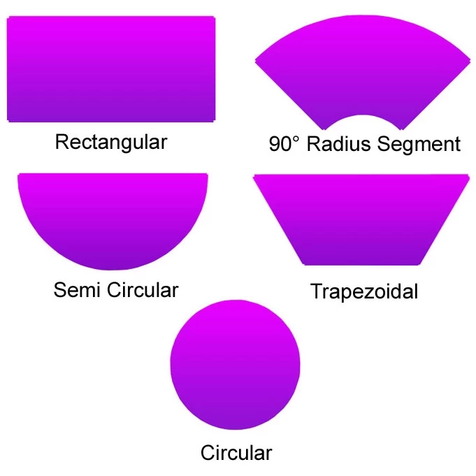 | 90° Radius Segment  | 1697  | 800  | 725 |